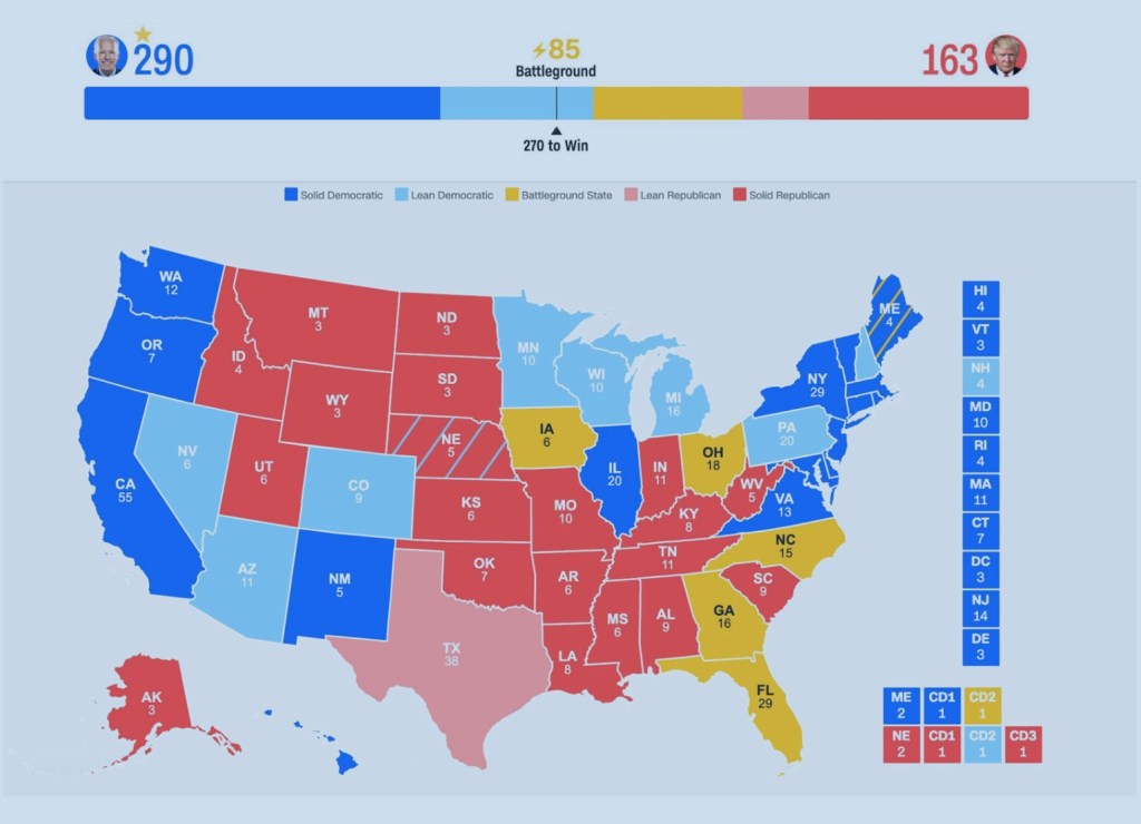 Let’s look at some map graphics, courtesy of CNN, which illustrate three possible election outcomes.
