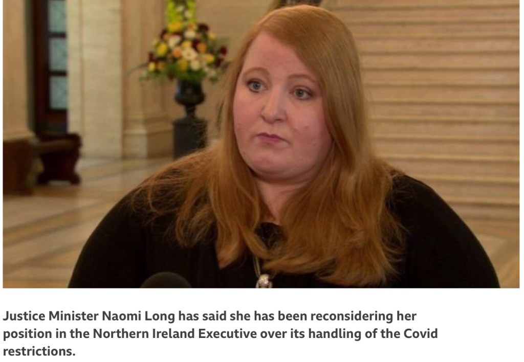 After days of wrangling, and while businesses, particularly in the hospitality sector, waited with baited breath, a number of comprise solutions emerged, put forward by Economy Minister, Diane Dodds, Health Minister, Robin Swann, and finally by an increasingly exasperated Justice Minister, Naomi Long, before the impasse was broken. It took an excruciatingly long time to get to the point where they were able to agree to Long’s proposal. This cannot be seen as anything other than a total failure of mandatory coalition government, just at that very moment when we were most willing it to work! That one time we needed strong leadership, unity and clarity of purpose and decisiveness, they collectively failed to provide it! How profoundly damning and depressing is that? I fear we have finally hit rock bottom! At least there is only one way to go from here and that is upwards. Ever the optimist!