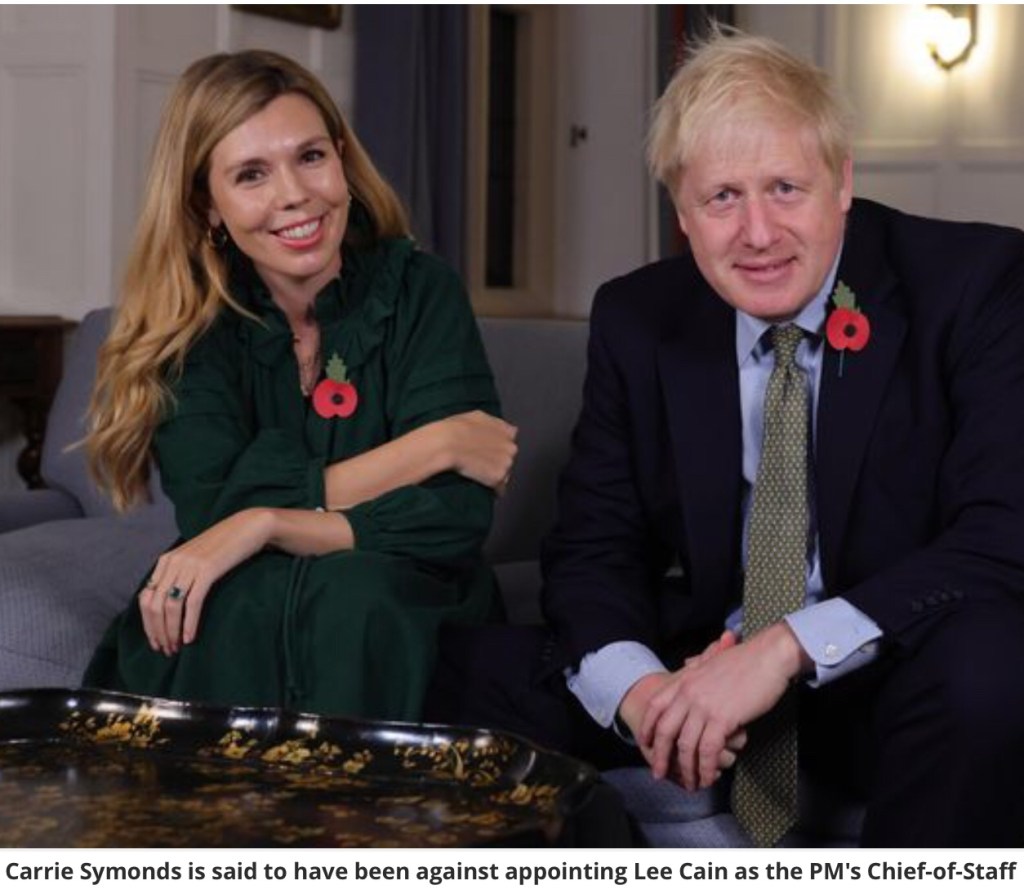 Mr Cummings has been at the heart of a No 10 power struggle, which has also seen former Communications Director, Lee Cain leave, just one day after being appointed as Number Ten’s Chief of Staff! A number of Tory MPs have publicly welcomed the pair’s departure as a chance for Mr Johnson to make a fresh start. It has been reported by several media sources that Boris Johnson’s fiancé, Carrie Symonds, had a hand in the departures! There have been allegations of inappropriate/unflattering text messages about Ms Symmonds being sent between the departing Cummings and Cain.